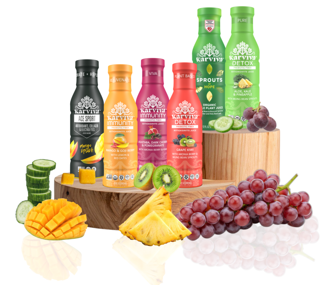 Each Karviva drink delivers targeted benefits like detox, immune support, mental clarity, or energy.