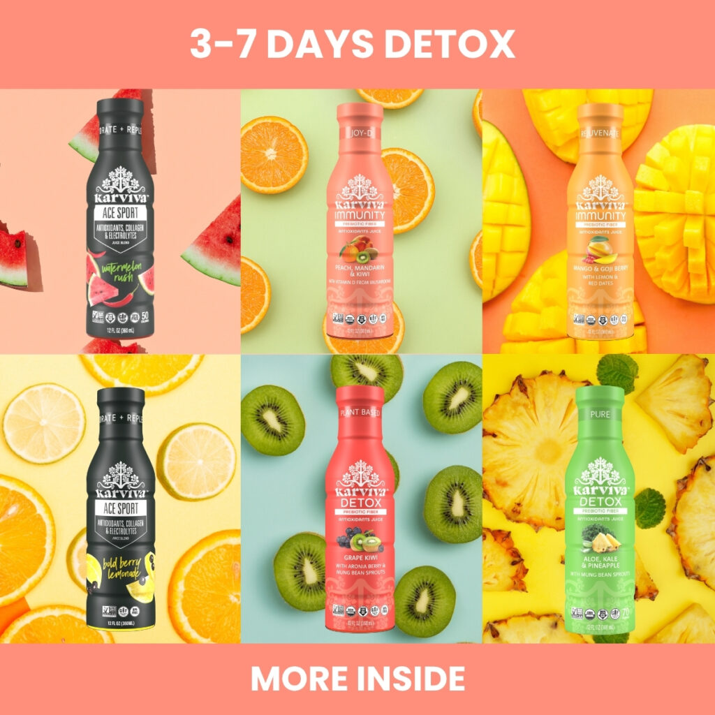 Each Karviva drink delivers targeted benefits like detox, immune support, mental clarity, or energy.